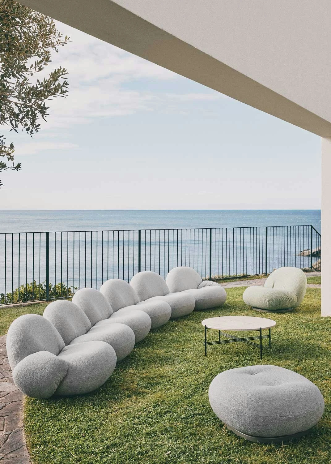 Gubi TS Outdoor Kaffeetisch Ø80×35 Cm, Schwarz/Weiß Travertin